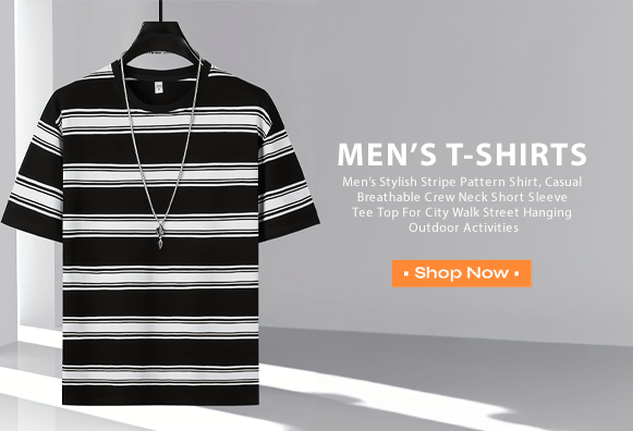 Men’s Stylish Stripe Pattern Shirt, Casual Breathable Crew Neck Short Sleeve Tee Top For City Walk Street Hanging Outdoor Activities