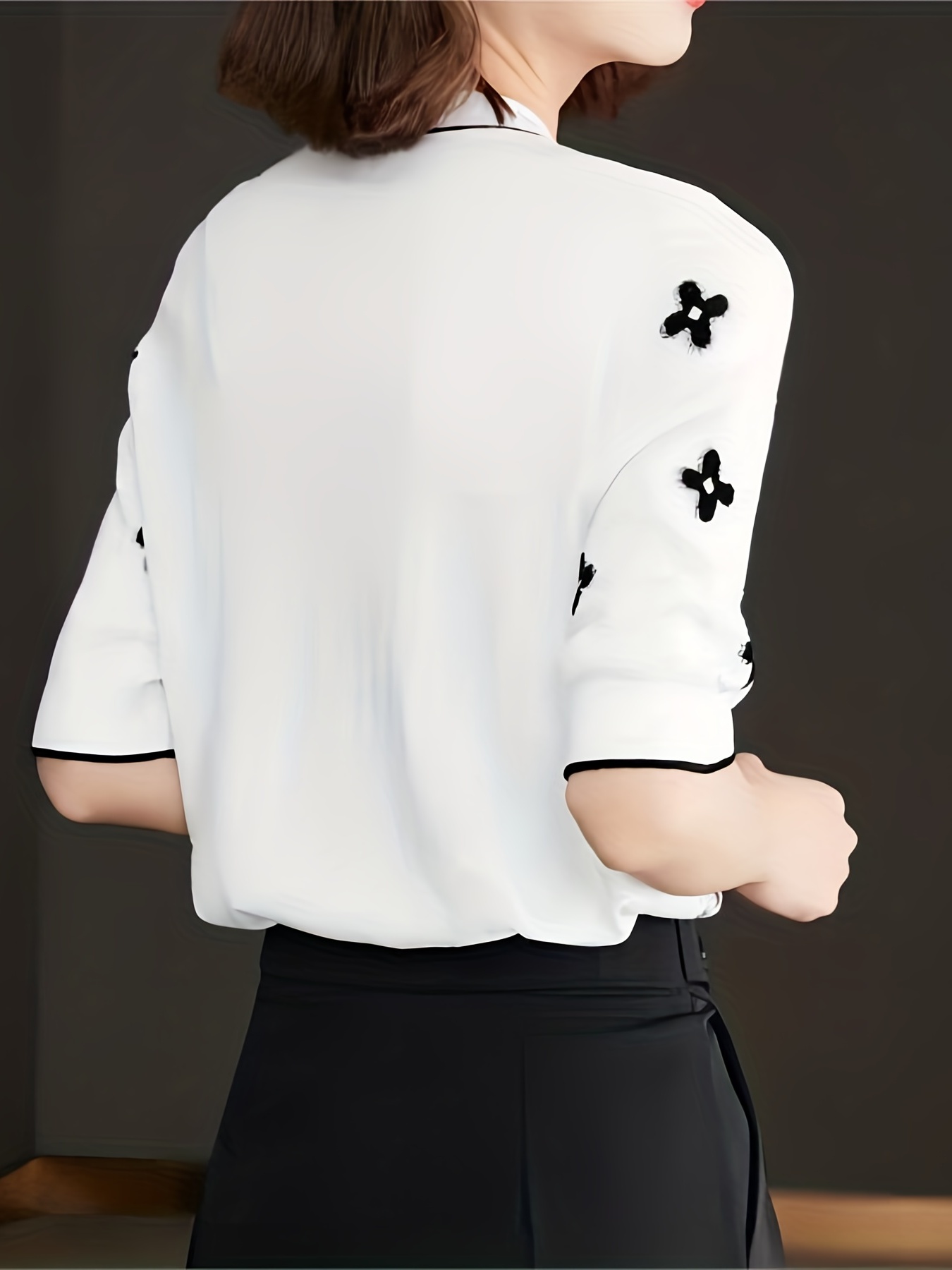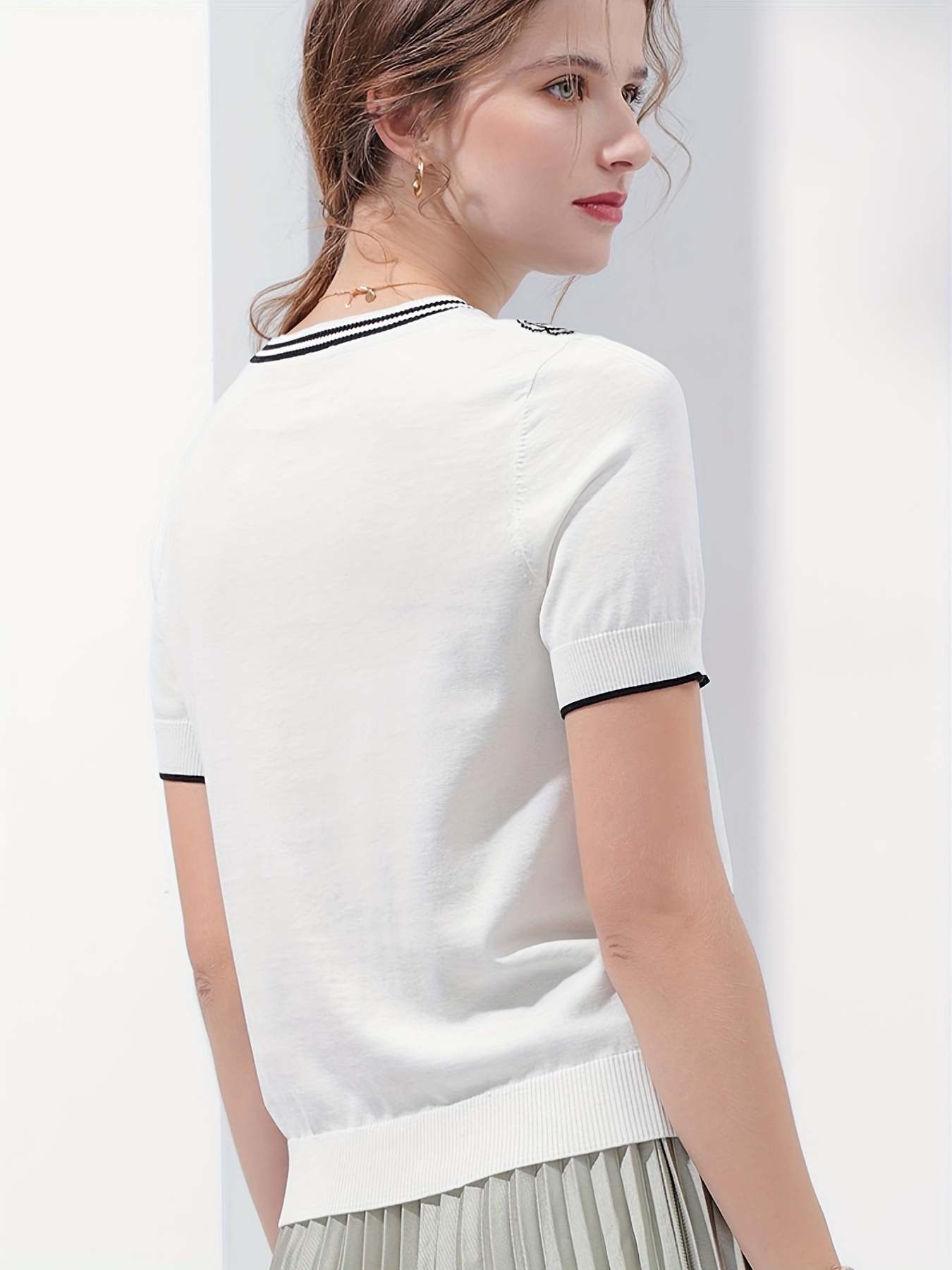 Textured Knitted Pullover Top, Casual Crew Neck Short Sleeve Top For Fall & Spring, Women’s Clothing