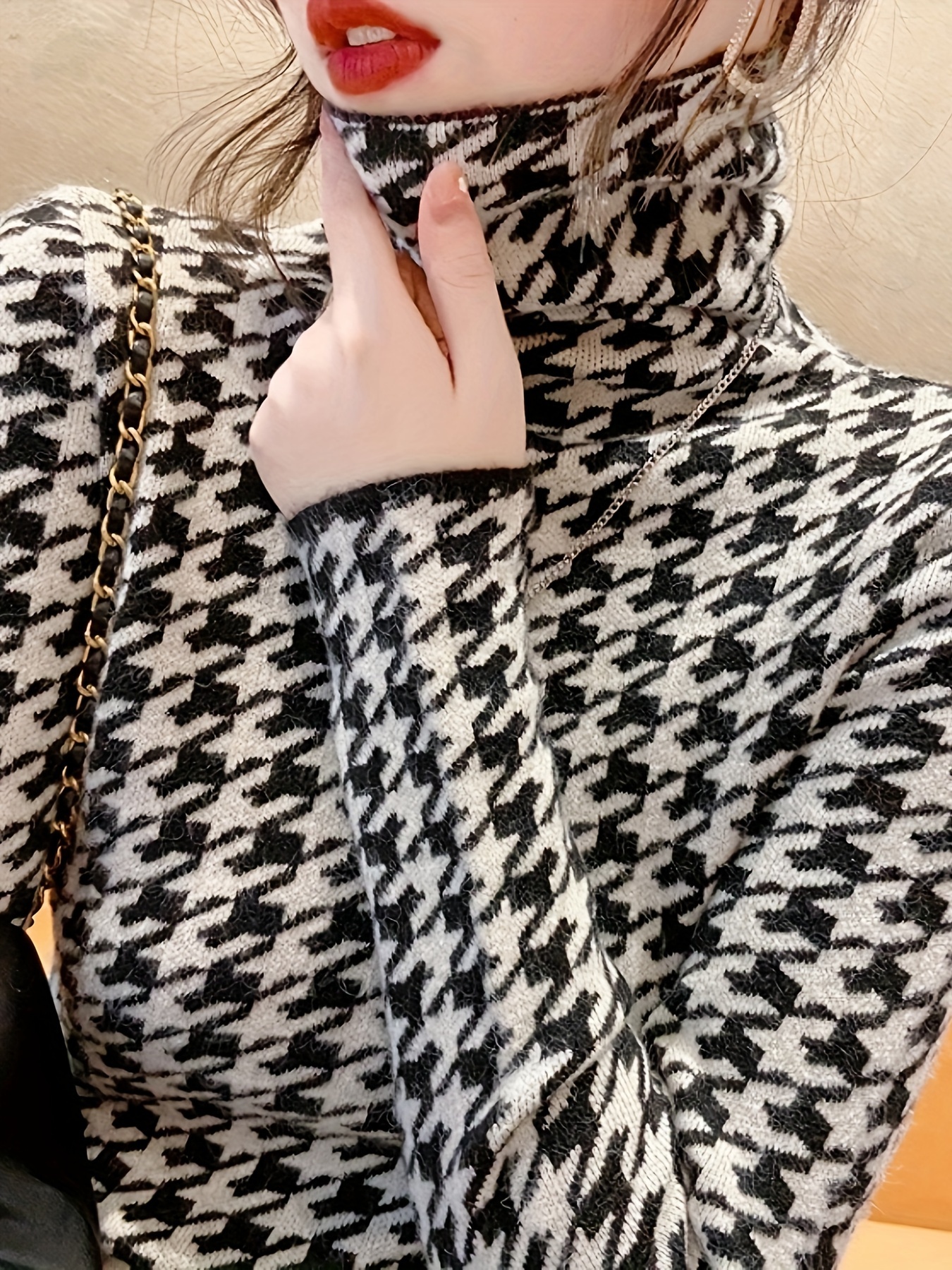 Solid Mock Neck Pullover Sweater, Casual Long Sleeve Sweater, Women’s Clothing
