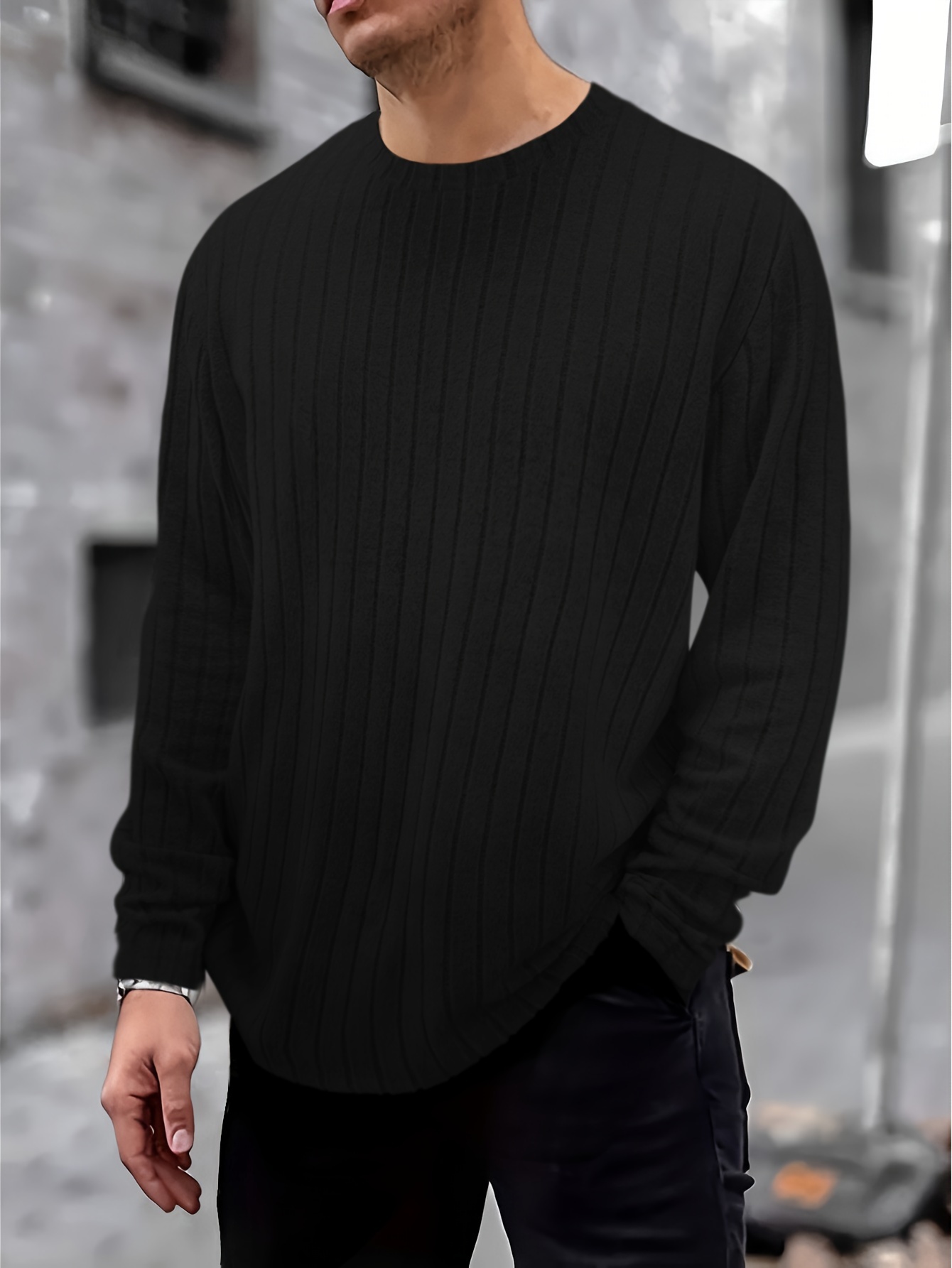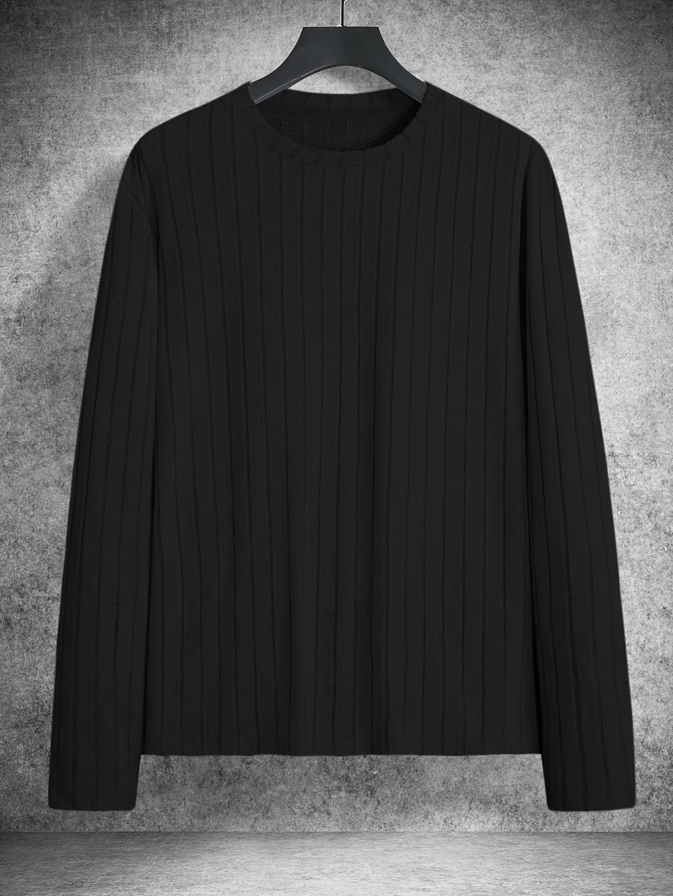 Men’s Ribbed Long Sleeve Stretch Knitted T-shirt for Casual Daily Wear – Fall/Winter Outdoor Comfort