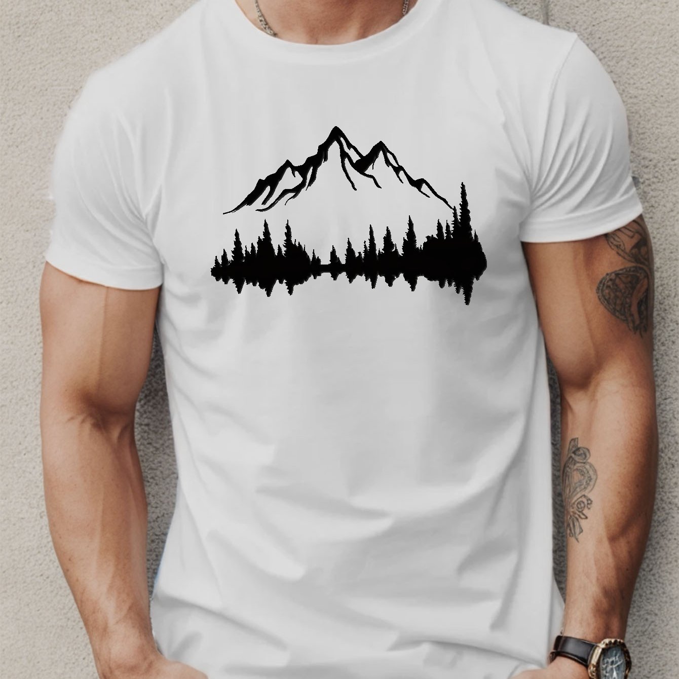 i can say is that Mountains And Trees Print T Shirt, Tees For Men, Casual Short Sleeve T-shirt For Summer is great. I like it.