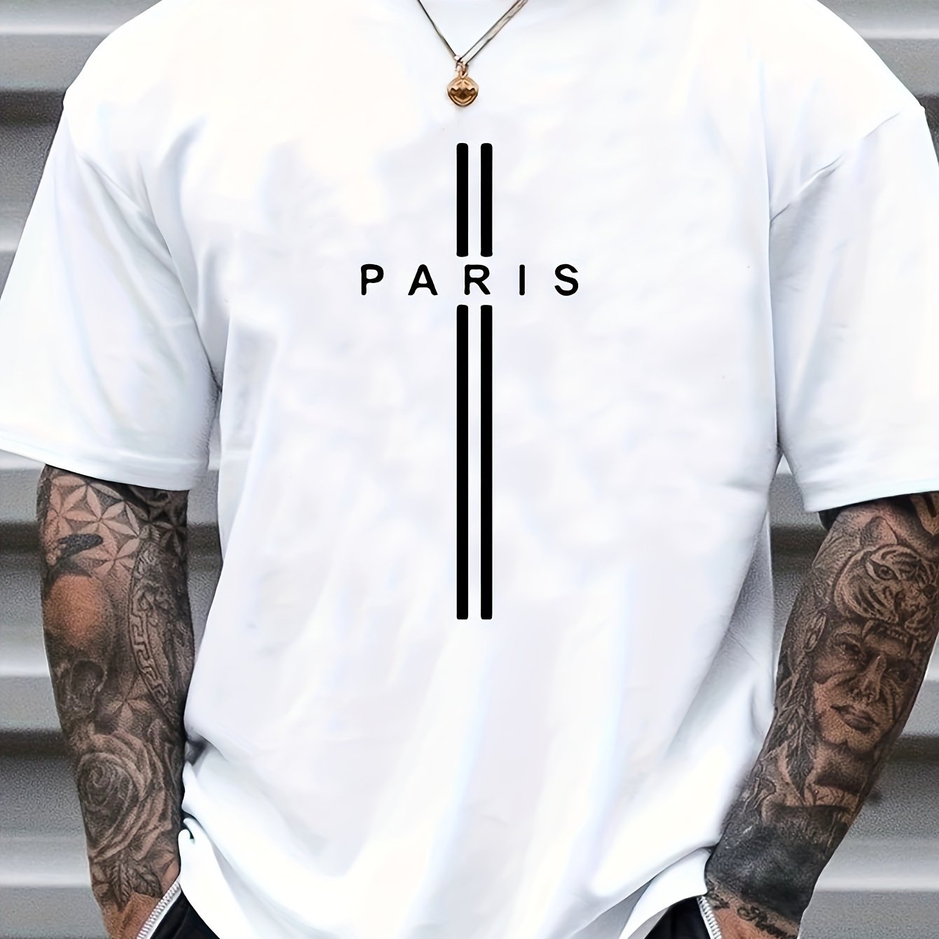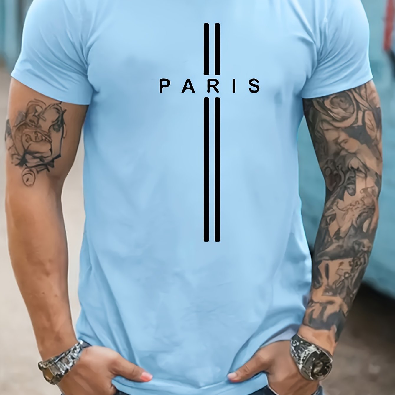 Home Men's T-Shirts PARIS Print, Men’s Graphic Design Crew Neck Active T-shirt, Casual Comfy Tees Tshirts For Summer, Men’s Clothing Tops For Daily Gym Workout