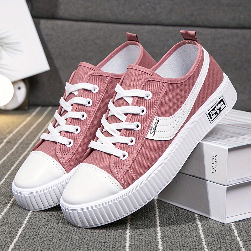 womens solid color stylish shoes lace up lightweight soft sole canvas shoes low top walking comfort shoes details 1